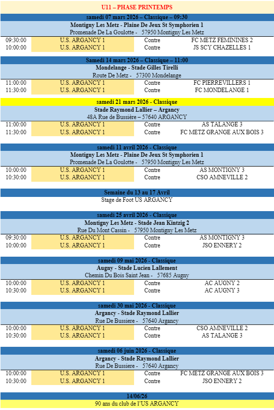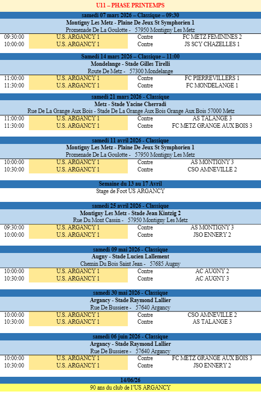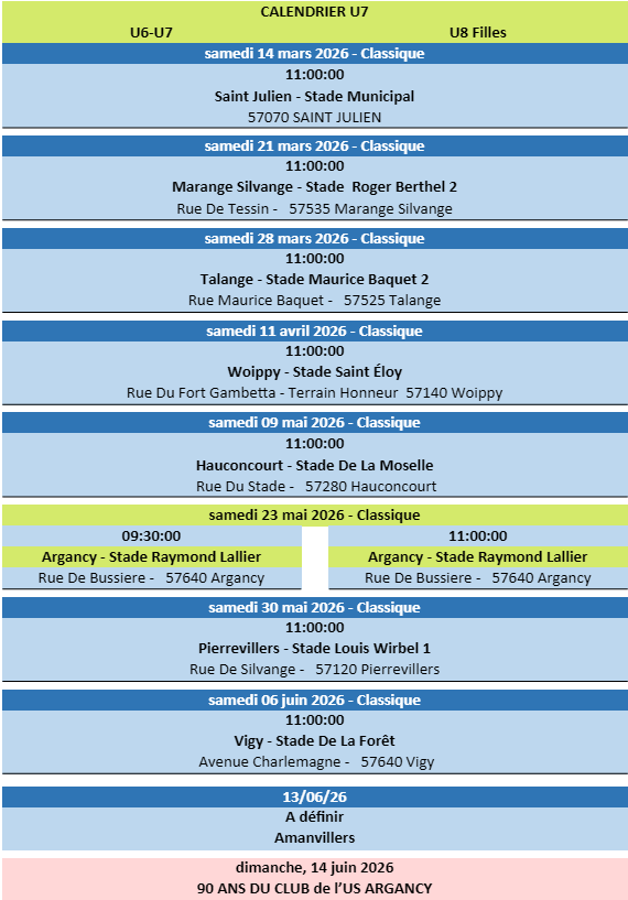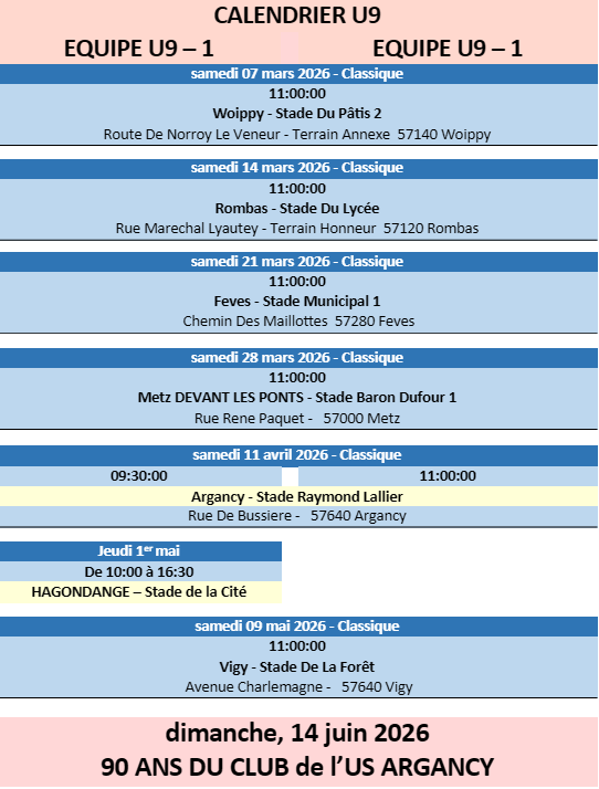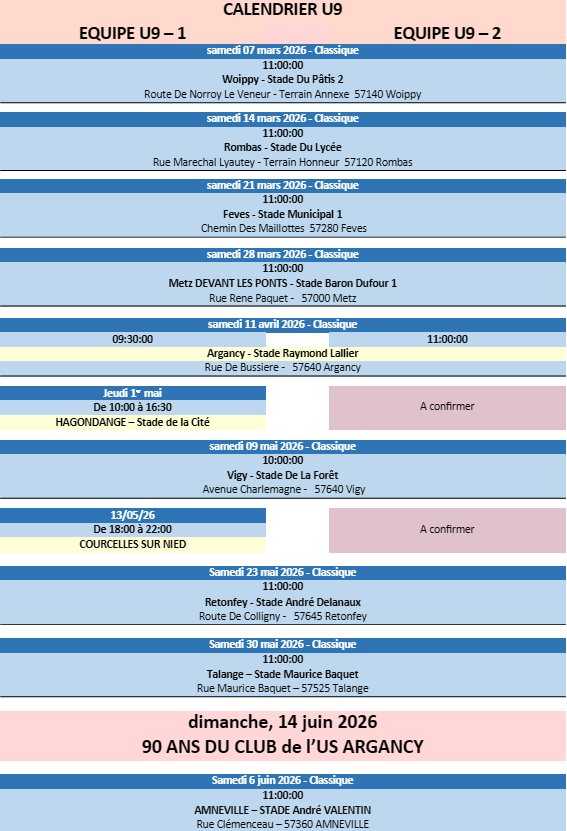 Voici les calendriers